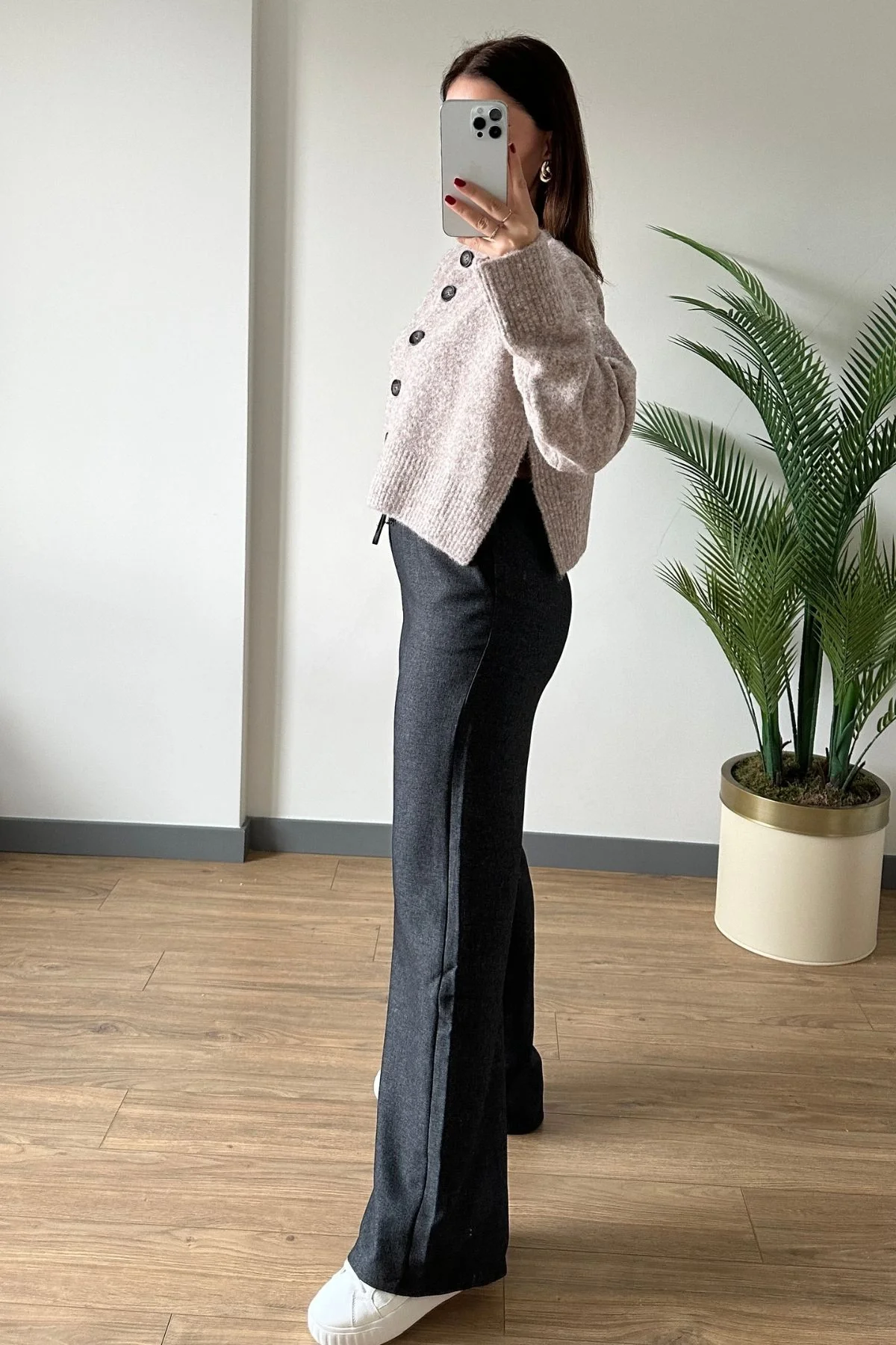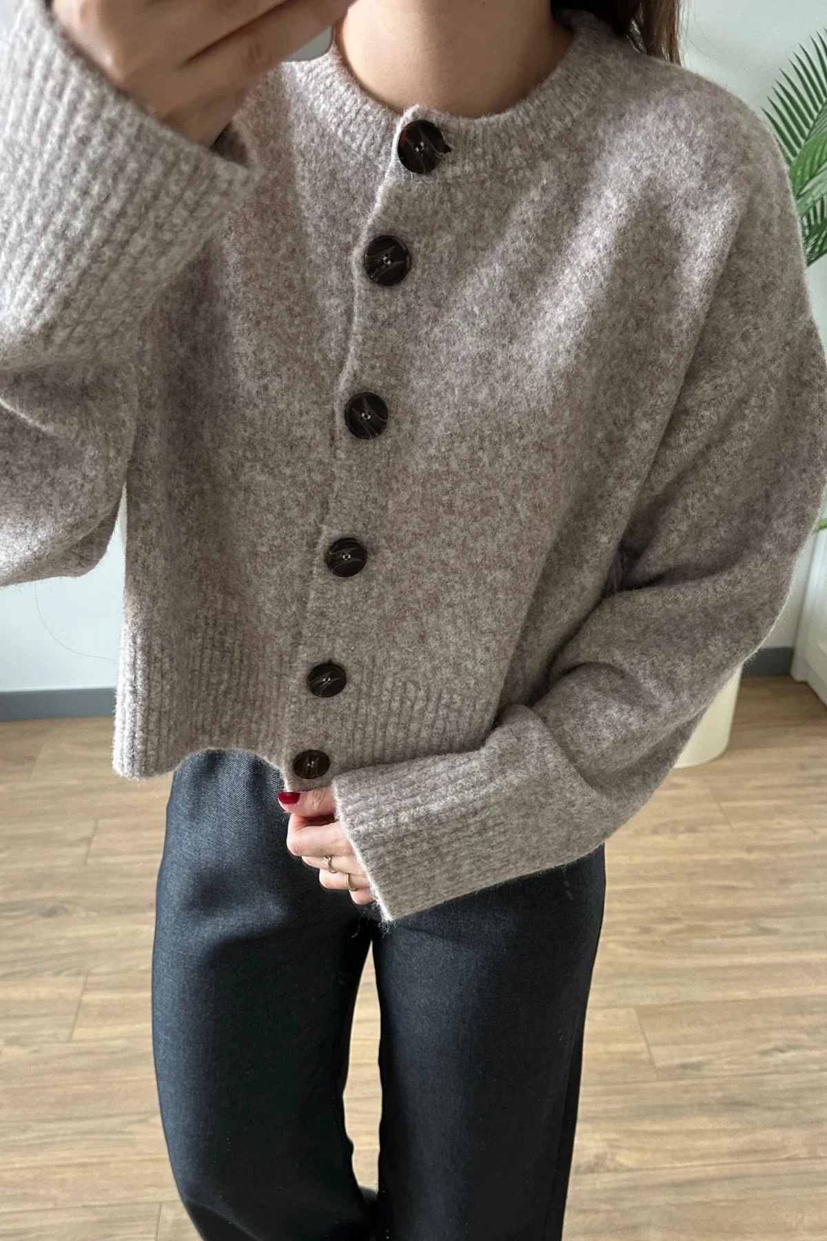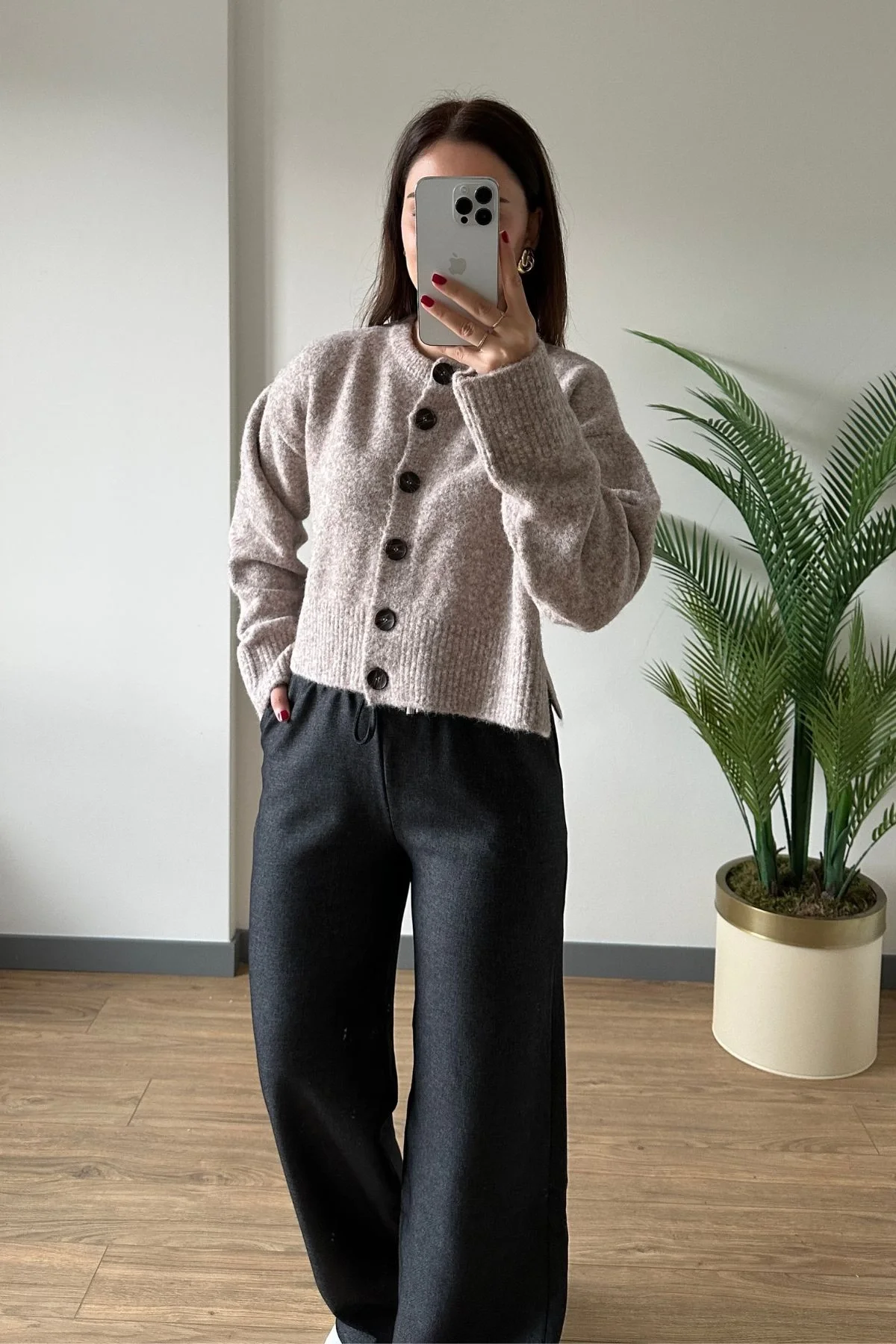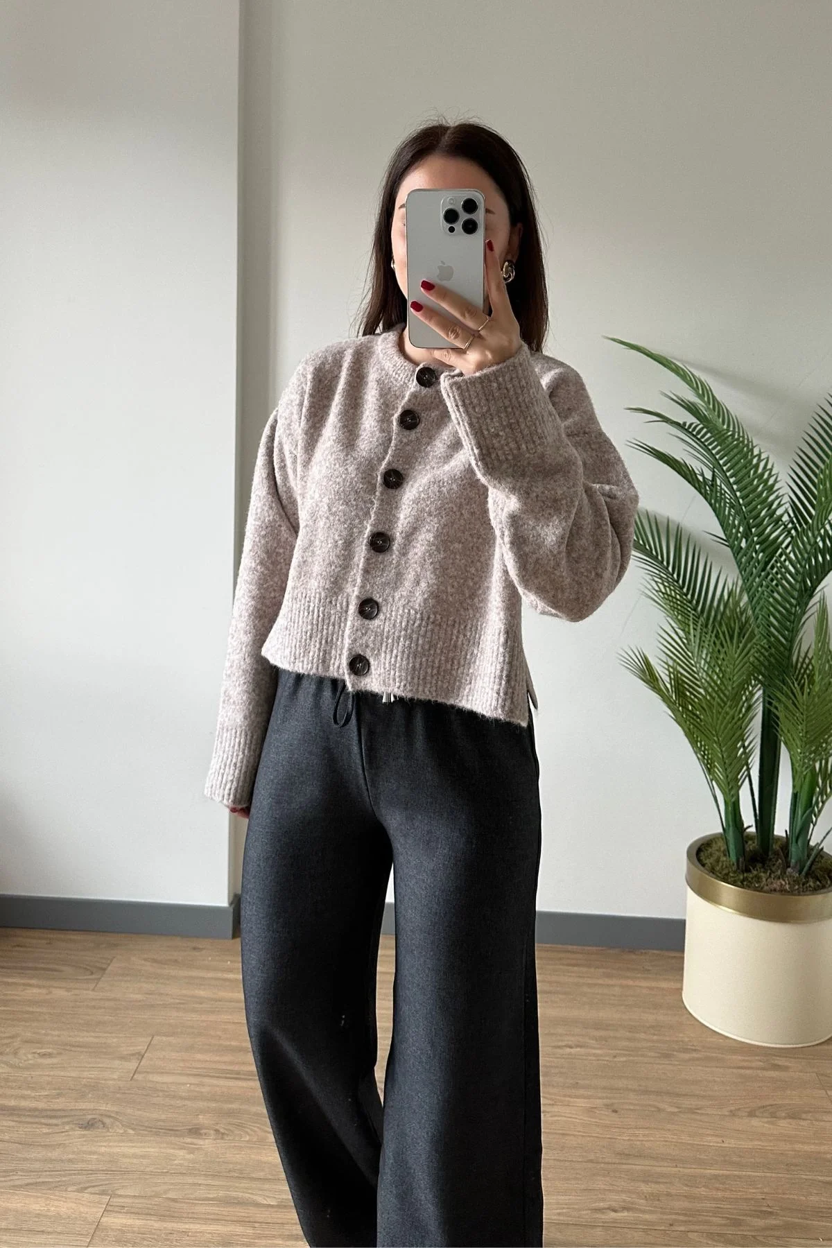 60280 Dik Yaka Düğmeli Yumuşak Dokulu Yırtmaçlı Hırka VİZON Hakkında